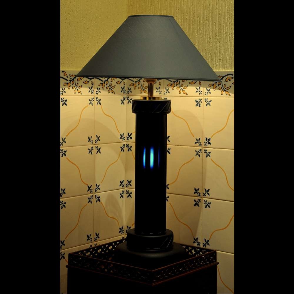 Candeeiro Vianne assinado, em azul cobalto e abat-jour em tela.